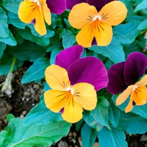 今朝の庭から💐 ①パンジー ブルーオーシャン ②ビオラ パンプキン 2種先日お迎えして地植え ③シバザクラ チラッと咲く ④アゲラタム&アンゲロニア そろそろ終わりかな ⑤アメジストセージ 暴れていたので✂️しました 良い週末をお過ごしください💜