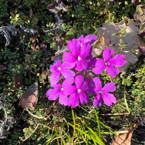 ハナミズキの周りのグランドカバー、シバザクラ🌸 日当たりもよく、夏の暑い盛りにはハナミズキがいい感じに木陰になり、春以外にもよく咲きます。 夏頃にも咲いていたような気がしますが、またちらほら咲きだしています。 春は500円玉サイズの花が咲きますが、今はちょっと小さめ。 増えすぎることもなく、いい感じにグランドカバーの役目を果たしてくれています。