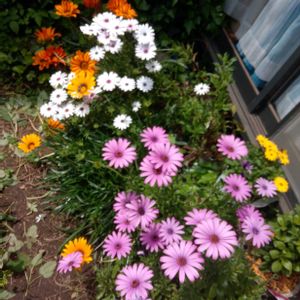 おはようございます🌄✨ ⚪️❀💜✾♡ 5枚の花びらを 見付けると ラッキー✨だそうです。 甘い優しい香りが します。 リラックス効果 ストレス緩和効果があるそう です。 🔸オレンジ色🔸のマツバギクが 一際輝いていました✨