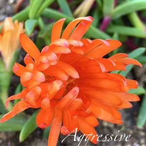 明け方までの雨もあがって 一気に晴れ間に 鮮やかなオレンジの花色 多肉質の葉 マツバギクの勢いを 感じます