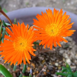 冬越ししていたマツバギクが鮮やかに咲き始めました🧡🧡 2️⃣寄せ植えのラナンキュラスももう4輪目🧡 3️⃣フリージアもやっとお目覚め🧡 4️⃣摘み菜にもお花が🧡 5️⃣可愛いからと放置の雑草オオキバナカタバミ🧡 🏷️日曜ビタミンカラー♪