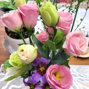 久しぶりにママ友と食事会 1️⃣2️⃣3️⃣4️⃣デパートの花屋さんの華やかなディスプレーと珍しい春らしい花たちにワクワクして撮らせていただきました。 5️⃣最寄駅の春らしい生け花