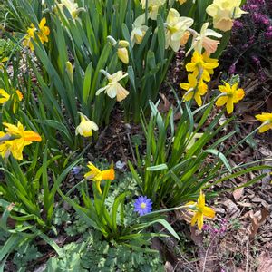 ① 水仙の間に紫の小さなアネモネブレンダが咲き出しました。 小さくて可愛い🩷 ② しもつけ 出始めは真っ赤な葉っぱで徐々に黄緑色に変わります。お花も咲かせてくれるし、言うことなし💓