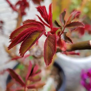 薔薇 ダブルデライトの深紅の葉 今日も寒いです。 それでも、薔薇の芽が伸びてきました。