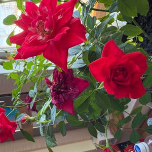 おはようございます。 夫が退職した時にもらった💐です。 優しい色合いの🌹が開いて、よい感じになりました。