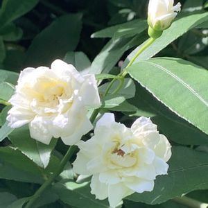庭の白モッコウバラさんが咲きだしました🤍モッコウバラさんはトゲがない優しい薔薇さん🩷かわいいです