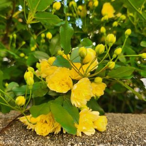 2年目のモッコウバラ 増えました🌹 バルコニーで育ているから、鉢植えだけど 大切にしてます♥