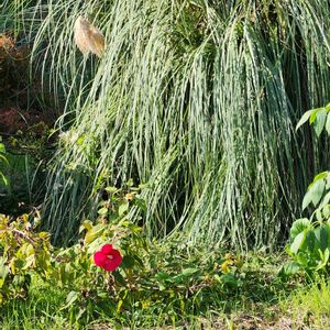 樹高は6m程度で、2.5cm程の線形の葉を多数着け、夏には5cm程のブラシ状の白い花が咲きます。別名
