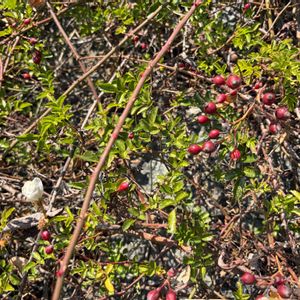 ハマナス (浜茄子) バラ科 バラ属 6~8月 1~1.5m 在来種 落葉低木 ハマナスの果実が赤く色づき始めています 楽しみですね~🥰 (※果実は偽果で、中に痩果が入っている) ところで、画像3枚目はどういう状況なのでしょうか? 果実に刺がたくさんあります こういう個体なのかな…🙄 過去に、冬枯れの枝に黒く萎びて刺のある果実が残っているのを見たことがあります その時は結構グロテスクに見えて、ハマナスと違うものではないかと感じたほどでした(笑) 珍しいものではないのかもしれませんね😆 画像をチェックしていて、同じ株に刺無しと刺有りの果実が混在しているように見えるものがあったので、今度確認してみようと思います💪