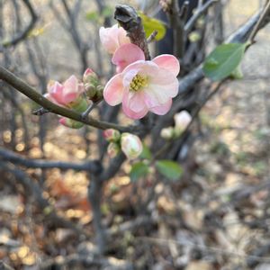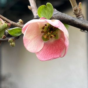 こんにちは。 晴れて暖かいですが、風が強いです。 週末に用事をしに出かけた帰り、散歩がてら駅まで歩きました。 雑木林に囲まれた公園の植え込みに、淡いピンク色の木瓜が咲いてました。 🏷️2026百花魁、4種目木瓜で参加します。