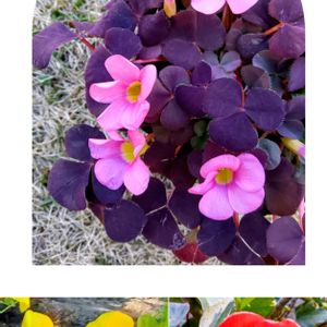 買ったばかりのオキザリスと 今日のお花オウバイ かなり剪定したけどまだ咲いてる木瓜