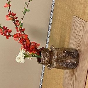 ボケ、水仙、信楽焼