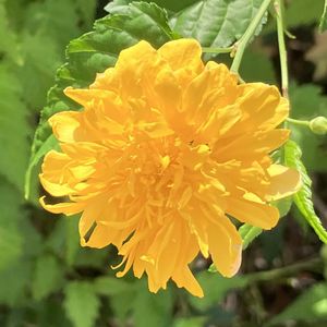 八重のヤマブキ💛🌿 近くの公園では、八重のヤマブキが春にも咲いていましたが、秋にも元気に咲き出しています♪