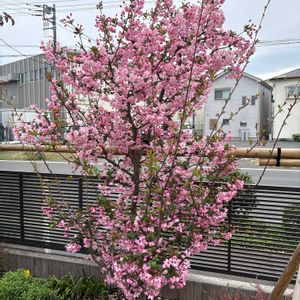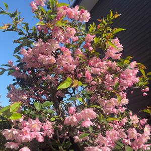 いつもの散歩道 先日咲き始めていた花海棠が満開💓💓💓