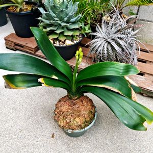 君子蘭 譲り受けて数年経過して、初めて花芽を出しました。 何色の花が咲くのか楽しみです。