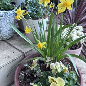 ぼちぼち気温も上がってきたので、春の為に鉢を移動したり移動したり、あと移動したりしました。ええ、移動しただけです😃 ①水仙ちゃんは積雪によって折れてしまって…浅布を巻きつけたりしたのですが、全然足りませんでした。 ②ビオラちゃん。多少傷みがあるものの、綺麗に咲いていたので写真🤳 これからどんどん咲き出すんだろうな。楽しみ😊