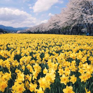 水仙畑と桜並木