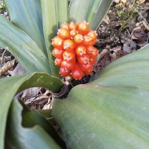 眉刷毛万年青 気がつくと、マユハケオモトの実が赤く色づいてました。