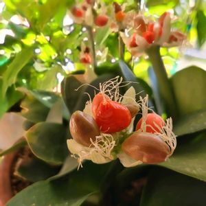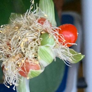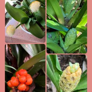 ①pic‥パパイヤ ②pic‥マユハケオモト サークルのお友だちのお家の鉢植えです🪴 私にとって‥珍しい植物だったのでupします🤗 パパイヤは‥もう熟しそうにないのでお漬物にして頂くそうです😅