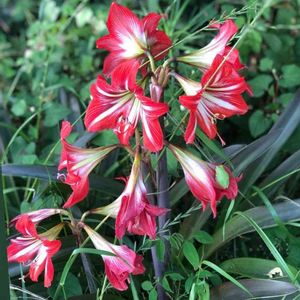 原種アマリリスsp. Hippeastrum sp. ペルーとエクアドルの国境付近由来の株として入手した原種アマリリスが開花しました😆😆 2025年は別の株から写真4.5の花が咲きましたが、今年はオレンジ色の濃い花が咲きました! 写真6枚目は2023年に入手した時の写真です。4株植えており、個体差があるのかもしれません! 2025年に開花した4.5枚目の株はスペース問題で休眠させているので開花したら見比べてみたいと思います! この種は開花に半常緑で休眠を必要としないことと、花の中心部が赤く染まることが特徴的です! ストリアータム、プニセウム、ロゼウム、レジナエあたりの近縁種かなぁと個人的には思っています。