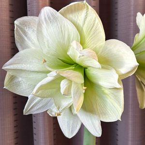 こんにちは😃 1️⃣2️⃣3️⃣ アマリリスのマリリンが開花しました🌸 育成を初めて一月半です🌸 初めてのポット栽培、水やりが不安だったけど、開花して一安心☺️ 今後は、花が終わったら切りとり、暖かくなってから球根を一回り大きい鉢に植え替えるとのこと🪴 4️⃣ 今回の成長過程をまとめました📝 室内の窓際に置き、約1週間に1回の水やりと数回の液肥を与えました☺️ ◯八重咲きグリーンアマリリス マリリン 花 20cm