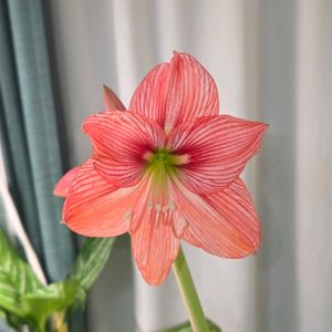 *アマリリス* 蕾だったアマリリス・スイートニンフが素敵なお花を咲かせてくれました。 もう1つの鉢の蕾の子は、白ぽいストライプアマデウス、咲くのが楽しみです。 水を与えて30日足らずで一番のお花が見れました。