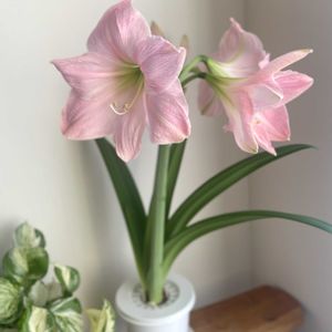 冬咲きアマリリス 小さな鉢から立派に咲きます♡ 茎がのびてきたらあっという間に蕾が見えてきて 暖かな部屋に置いてるので、毎日蕾が開いていきます 1本の茎に4つのお花🌸 そしてなんと今年の球根はもう一本茎が伸びてきてて そちらにも小さめの蕾が🙌🏻 去年白を育てたけど、1本だったから 2本出てきてびっくり 毎日お部屋で成長が見れて楽しいです*.(๓´͈ ˘ `͈๓).*