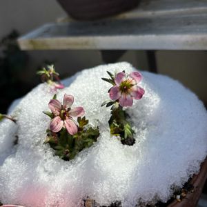 おはようございます😃 1️⃣ 🎶雪が溶けて、、クモマグサが元気に顔を出してます🎵☺️ 2️⃣ 朝日に向かって雪をまとい咲いていた紅梅、夕方になると雪は溶けて、夕日を背にしていました📸 3️⃣ 兜丸、陽射しに後押しされ、ようやく全開しました。 4️⃣アマリリス ダブルドラゴン 花数が増えました🌸 🏷️アマリリスで真っ赤な火曜日に参加させて頂きます