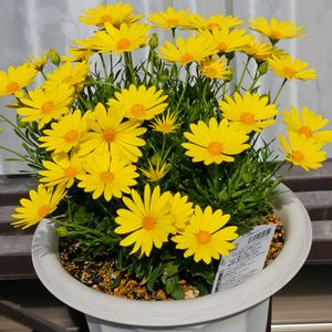 サントリーフラワーズ キララ イエロー✨ 10月11日(土)にお迎えしました🗓️ 前回の投稿が11月20日(木)📅 キララはサントリーフラワーズさんのオステオスペルマムです~😃 寒がりだから夜には室内に避難しています~✌️ 開花期は9月~11月と3月~6月のようです~🤩 と いうことは12月は基本的にはオフシーズンですね~😅 でも我が家のキララさんはここ最近は5~6輪咲いてくれてます~☺ 株はちぃちゃいけど蕾は両手では数えきれないぐらいあります~😃 たくさんの蕾から咲いてくれるんのかなぁ~😃🎵