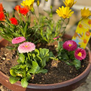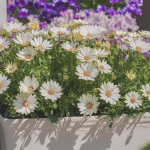 今期迎えた "アークトチス" 花が開いてきましたꕤ︎︎ 春にぴったりの優しいお色ෆ˚* シルバーリーフで全体的に雰囲気抜群です🤍 "サントリー キララ" も少しずつですが花が増えボリュームも増してきています🌼*・🌼*・🌼*・ 4年目に突入する "葉牡丹 萌花ショコラ" 親株も残ってますが、挿し木でも更新しながら育てています🪴