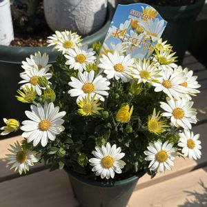 こんばんは😊 サントリーフラワーズ さんの キララホワイト 🤍 昨年の秋にお迎えしてから だいぶお花が増えてきました🥰 秋にお迎えした時から植え替えしてなくて… やっぱり鉢増しした方がいいかな? いいよね? パンビオがここ最近の春の陽気と雨で 生長という名の徒長してきてる 花柄摘みしててもつぼみが減ってきてるから お片付けも近そう… そしたら場所できるから鉢増しするね笑
