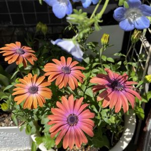 1️⃣ キララ✨たくさん咲いてきました〜🙌 もっと咲くのかな〜💛 種から🌱ネモフィラの淡いブルーと 爽やかな組み合わせでいい感じ♪ 2️⃣ 種から🌱キンセンカ🧡 大きさ色々と咲くキンセンカ🧡 こちらは小さめ♪カワイイ🧡 3️⃣ 土曜日お迎えのボンザマーガレット💛 枯れかけ救出❗️ 4️⃣ オステオスペルマムアキラさん♡ 白も素敵♡ 5️⃣ 初めての挑戦‼️本気野菜で 丸茄子🍆楽しみ👍 ✨キララ✨も救出したもの☺️ ボンザマーガレットもこれからの 復活に期待です♪