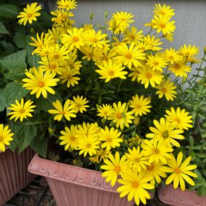 ハッピーカラーで元気が出る キララ:゚・*☽:゚・⋆💛 毎日キラキラ咲いてます✨ 名がわからない ミニバラ 蕾が少し膨らんできました🌹 綺麗な赤♥️ 気分上がります🎶 冬越しした モミジアオイ 終わった茎の横から新芽が出ました! 外のビニールハウスに入れていた オリヅルラン 極寒の時にシバれて葉が枯れたのがあるけど、根は生きていて芽が出てきてます🌱⋆。 昨年からの シュウメイギク も葉がワサワサになりグリーングリーン💚 先月末に迎えた ユーフォルビアルビーグロー もグリーンで爽やか👒𓍯𓂃 𓈒𓏸