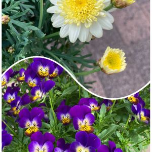 寄せ植え フリル咲きパンジーの中にムスカリを入れてたのが顔出してきてます。 2枚目はアップで🤳 撮りました。 花壇 ボンザマーガレット 地植えして1週間位かなぁ🤔 おはようございますm(_ _)m 今日は☁☂マークです。