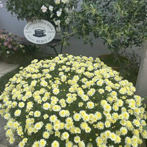 こんにちは😃 3年目のボンザマーガレットがほぼ満開になりました🌼🌼🌼 先日測った時85cmありました📏 大きな亀の甲羅みたいです🐢笑