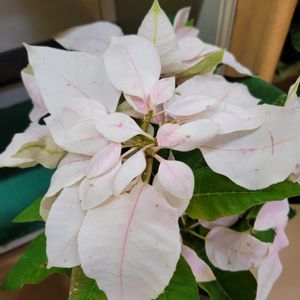 終わりかけの 🩷プリンセチア(室内) これは去年挿し芽した若い子なので こんなに🩷色が着いてくれたかな? 親株はあまり色がつきません💦 今年は春に更に 挿し芽株を作らなきゃ! 下は、純白カホリスイセンの白い花! 沢山咲いてきました🤍 日当たり悪いけど よく咲いてます。 日当たり良い方のはまだ成長遅いです😚