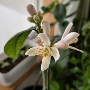 第1弾の花が終わり実をつけ 第2弾の花が咲き始めているレモン🍋 何ともまあ可愛らしい(*´∀`)♪ 見上げるとフクシアが順番に花が咲き賑やか🌸 不注意で鉢にばら蒔いてしまった種は サラダ春菊だったらしいw 今夜食べよう🎶 2月にバッサリと剪定したプリンセチア🌱 ͛.* マダラ模様の葉がちらほら。 これはこれで好きだなと。 陽射しが強くなってきたから 植物の移動も考えねばなと思いながら 移動したらしたで、 気に入って貰えなかったら 植物たちは、しょげしょげご機嫌ナナメ下になっちゃうだろうな とか思うわけで。 現状だって気に入ってもらえているのか定かじゃない。 なんて、ぼ~っとしていたら あっという間に、 空は藍色、キラキラ星︎🌟 ぼ~っとする時間ってのは、 どうしてこんなにも 過ぎるのが早いのだろうか!₍₍ (̨̡ ‾᷄⌂‾᷅)̧̢ ₎₎
