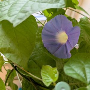 朝顔が咲きました😂! 子どもが保育園から種を持ってきて、秋に遊び半分で蒔いたもの💦 室内環境ですが咲くんですね…😳✨笑