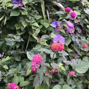 1.ノアサガオ2色咲き。開花初日は青、2日目ピンク(酸化によるものらしい?) 2.ずっと花付きが悪くて不満だったデュランタ、今年はようやくマシになってきた。ルリマツリ同様、来年は本格化するか。 3.今年は投稿が少なかったランタナ2号。もう少し冷え込むと赤一色になるが今は美しい。かなりノアサガオに覆われており、駆除するために今冬にランタナも一度根元まで切り戻すかどうか。 4.キバナコスモス。ピークは過ぎたがまだ美しい。 5.タイワンホトトギス。以下同文。 以下園芸メモ。 西のノアサガオ駆除にかかってるが、ノアサガオに覆われたアジサイは息絶え絶え。今年はモミジが死んだが、来年はアジサイが死んでも驚かないレベル。 植えて5年でようやく初開花したノウゼンカズラ、ネットで見た記事によると根が広がってヤバいよう。うちもサルスベリの根で水道管がダメになったことがあるし、ノウゼンカズラは除去したほうが良いかも。