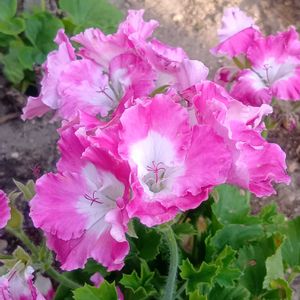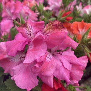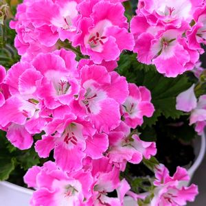 《ペラルゴニウム(和名:ナツザキテンジクアオイ)》 特徴: 南アフリカ原産のフウロソウ科の植物で、春から初夏にかけて豪華な花を咲かせます🤭 花弁の縁がフリルのように波打つ品種が多いのが特徴🌼🌸