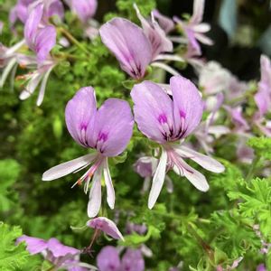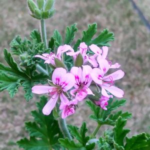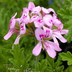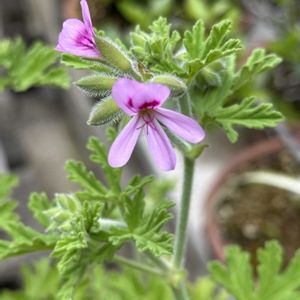 ローズゼラニウムはフウロソウ科・ベラルゴニウム属の、薔薇のような香りがするピンク色の小ぶりの花を咲かせる植物です。 葉には深い切れ込みが入っていて、縁...
