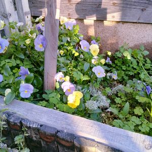 ビオラとカタバミが今日も壮絶な日照争いを繰り広げておりますw💦 本来このスペースの主役はウエストリンギアなのですが完全に埋もれてますね…w ビオラのピークが終わったらカタバミと共に完全撤去してしまおうと思ってます💦 ちなみに2枚目はローズゼラニウム畑です✨各株の間にメカルドニアのゴールドダストを、そして両端にムスカリも共存させてます✨