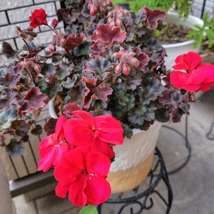 真っ赤なゼラニウムがクリスマスを待ちわびてます🎄 イブイブですね✩.*˚