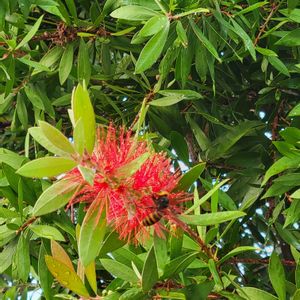 おはようございます。 相模が丘仲よし小道で出会ったカリステモンです。いわゆるブラシの木です。普通は5月に咲きますが、年に2・3回咲く木もあるそうです。 初めて見ました。面白い花ですね。