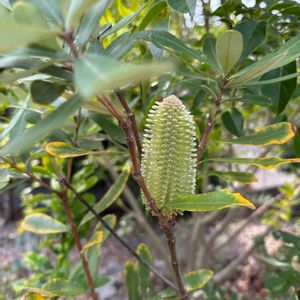 コーストバンクシアに新しい花が咲いていました。カリステモン•ホワイトアンザックにも新しい花芽がついていました。