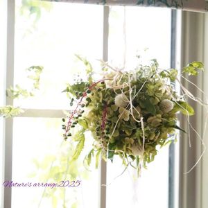 こんにちは~☁ 天気予報の☔マークに期待していたのに、ほんのお湿り程度💦 最近の極端な天候 どうなっているのでしょうね🤔 警報が出ている地域の皆様 お気をつけてくださいね♡ ドライのアナベルを使って フライングボールを作りました⚾︎𓈒𓂂𓏸 白千日紅や洋種ヤマゴボウ、レモンマートル、カニクサも入れて ゆらゆら揺れて可愛いんです *.(๓´͈ ˘ `͈๓).*