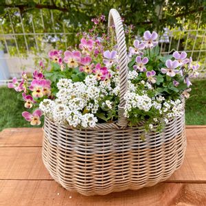 こんにちは☀️☁️☔️ 遠くの山が真っ白です🏔️ 先日フラワーハーツ八ヶ岳さんまで お迎えに行ったビオレッタ🌸 どれにしようか、迷いに迷い 直売所なので、お値段も優しく 沢山お迎えしちゃいました。 サービス品もあり🫢 生産者さんとのお話も楽しかった🎵 とりあえず2つ籠に🧺🌸 植え込みも楽しい🎵 一緒に寄せるお花がまだ少ないんだけど💦 投稿は勿体ぶって小出しにします😆 寒い我が家でも 一度もダメになった事がなく 思った通り咲いてくれる。 大好きなビオラです💗