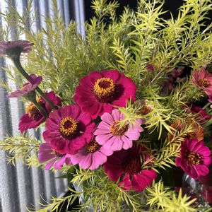 メラレウカを頂いたので庭の百日草と、、、❣️