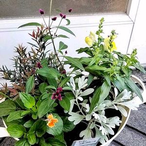 パンビオと一緒に寄せ植えも買いました。 キンギョソウ 千日紅 シロタエギク メラレウカ(たぶん) ビオラ