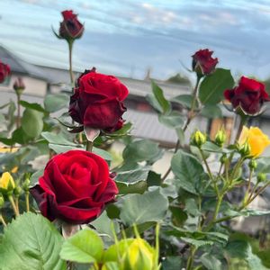 こんばんは♪ 今晩降るみたいだけどどうなのかなぁ?朝の水やりが出来ないので降らなかったら大変なので…やり過ぎになるんです😂 3/15に1回目の散布して昨日すでに6回目。ちょっと今季はハイペースになってるかも⁈ 雨予報を聞くと心配になってしまいます🥺 やっぱり種類は要りますね💦 フライング気味ですが💦 ①ドンファンは今年も早めから勢いが良いです🌹 1番花以降は乱れるし黒星もそこそこ出るので今からを楽しみたいです😌 ②ベルロマンティカは狭〜い通路を跨いでドンファンエリアへも進出💛 渋赤を和らげてくれると良いな😊 ③はつね🌹もあと少し💦 今年は怖がらず全ての鉢植えを軒外へ。まだまだ素人なので色々試してみます😌 ④ギョリュウバイも咲いてきました💕 ⑤先週投稿したキャンディークラブは雰囲気変わってきた🫢 ネーミングがちょっと分かる気がする… ビニールに入った5本くらいのアイスキャンディーみたい🎶 可愛さ増してきてる🥰 今週も宜しくお願いします♡